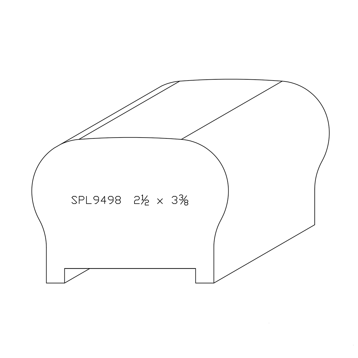 2-1/2" x 3-3/8" x 4" SPL9498 profile sample. The sample will be 3D printed with white plastic material. Samples will be approximately 4" in length. Samples are limited to an order quantity of 1 per profile.