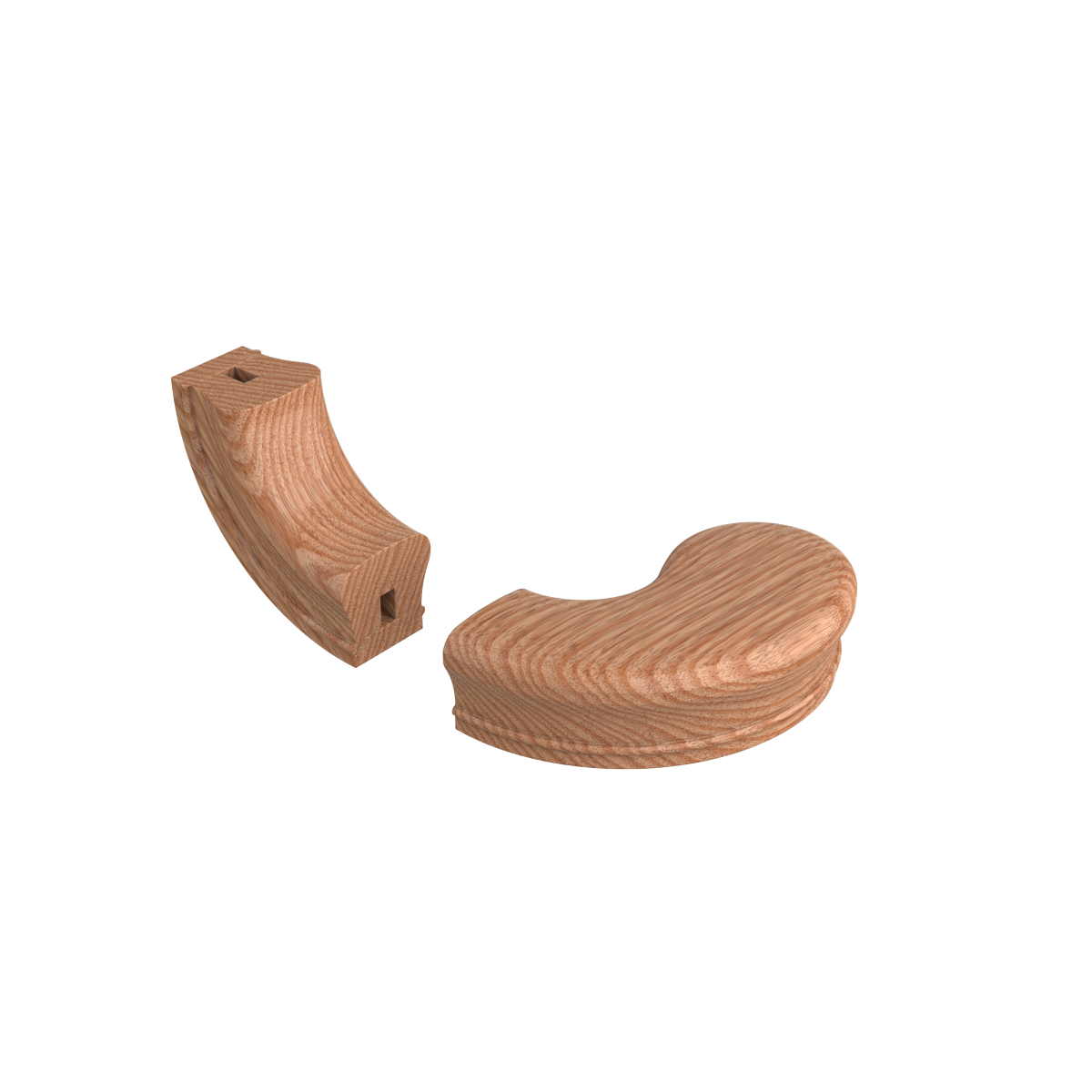 Red Oak Right Hand Turnout w/ 90° Upeasing Fitting (5" center to center) for LJ-6210 Hardwood Handrail